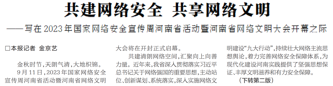 ——写在2023年国家网络安全宣传周河南省活动暨河南省网络文明大会开幕之际
