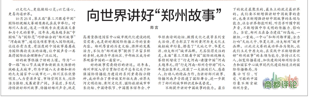 向世界讲好“郑州故事”