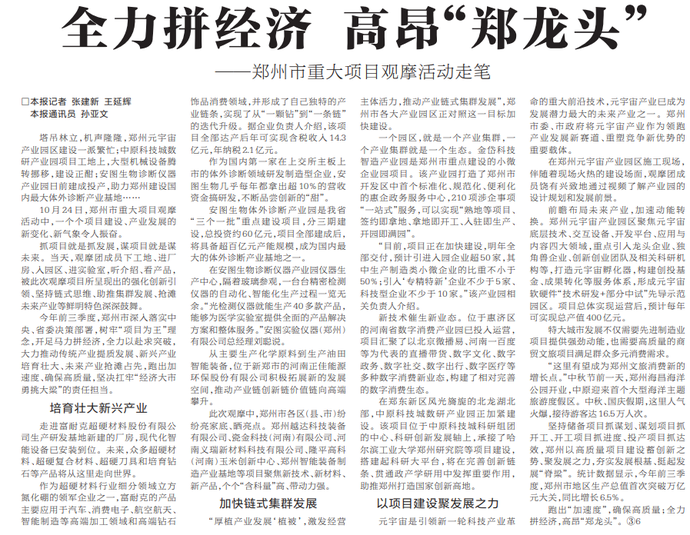 10月24日,郑州市重大项目观摩活动中,一个个项目建设、产业发展的新变化、新气象令人振奋。(今日《河南日报》4版)