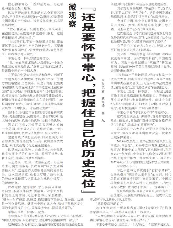 信心和平常心,一组辩证关系。习近平总书记在实践中思考。(今日《人民日报》1版)
