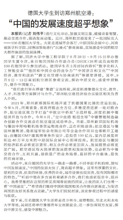 德国大学生到访郑州航空港:
