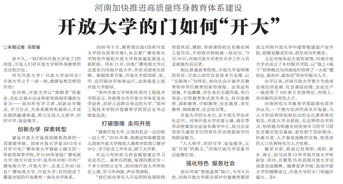 何为开放大学?开放大学如何办?开放大学之于一省一地,能够发挥怎样的作用?(今日《河南日报》3版)