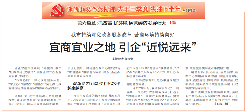 我市持续深化政务服务改革,营商环境持续向好
