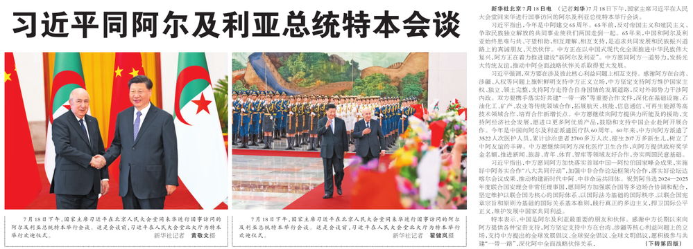 7月18日下午,国家主席习近平在人民大会堂同来华进行国事访问的阿尔及利亚总统特本举行会谈。