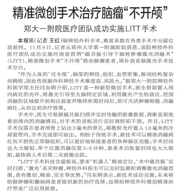 郑大一附院医疗团队成功实施LITT手术