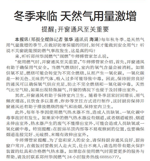 每年秋冬季,是天然气用气量激增的季节,在做好防寒保暖的同时,如何才能做到安全用气?听说不关窗就能预防燃气事故发生,这是真的吗?(今日《郑州日报》5版)