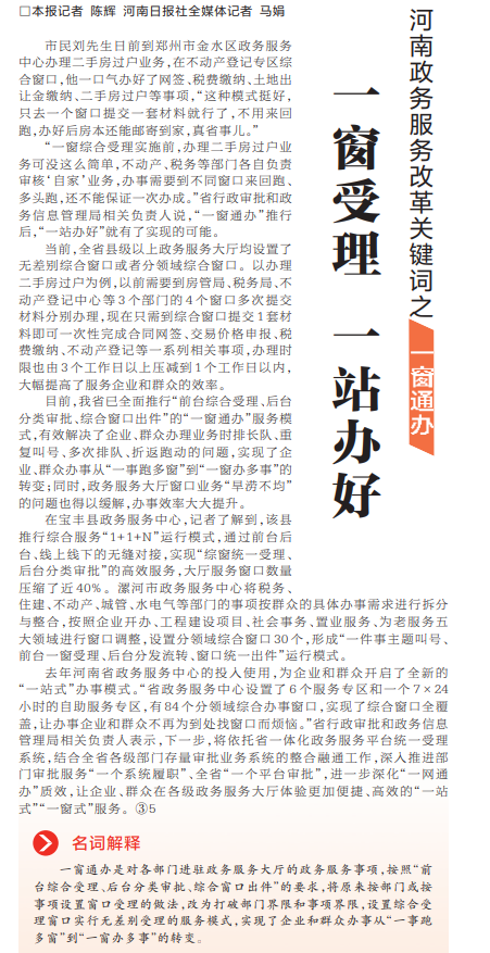 河南政务服务改革关键词之一窗通办