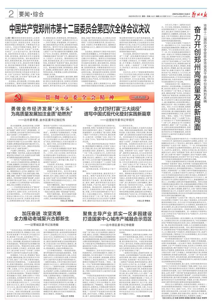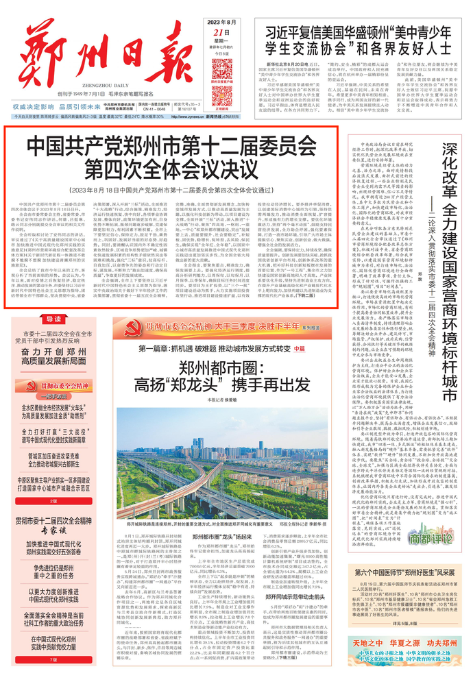 (2023年8月18日中国共产党郑州市第十二届委员会第四次全体会议通过)