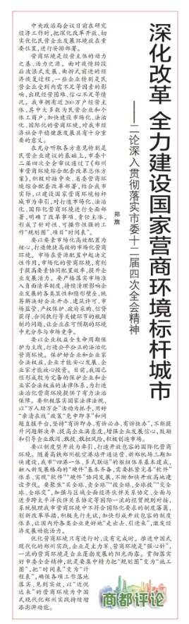 中央政治局会议日前在研究经济工作时,把深化改革开放、切实优化民营企业发展环境放在重要位置,进行安排部署。(今日《郑州日报》1版)