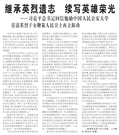 ——习近平总书记回信勉励中国人民公安大学在读英烈子女鞭策人民卫士再立新功