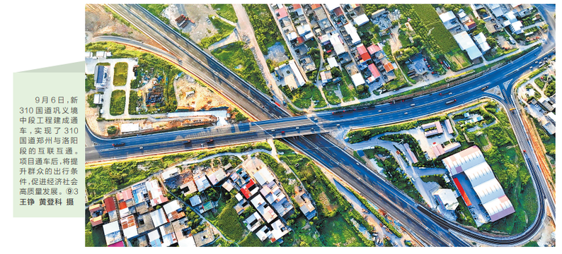 9月6日,新310国道巩义境中段工程建成通车,实现了310国道郑州与洛阳段的互联互通。项目通车后,将提升群众的出行条件,促进经济社会高质量发展。(今日《河南日报》1版)