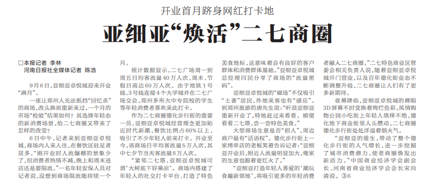 一座让郑州人无法抵挡“回忆杀”的商场,改头换面重新来过,一个月的市场“检验”结果如何?其选择年轻态的新消费场景,给二七商圈又带来了怎样的改变?(今日《河南日报》3版)