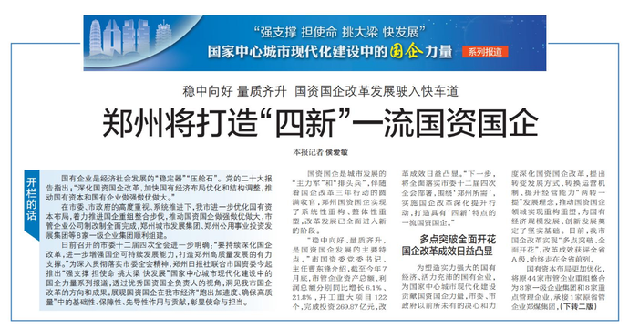 郑州将打造“四新”一流国资国企