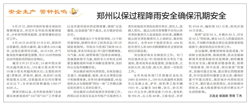 郑州以保过程降雨安全确保汛期安全