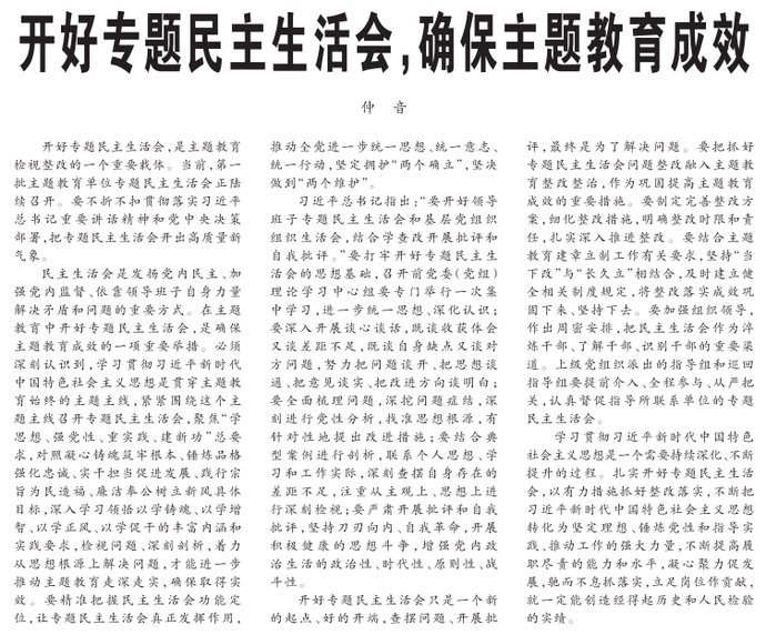 开好专题民主生活会,确保主题教育成效
