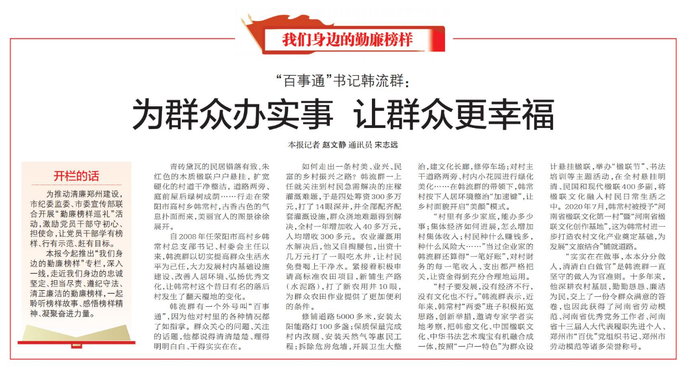 为推动清廉郑州建设,市纪委监委、市委宣传部联合开展“勤廉榜样巡礼”活动,激励党员干部守初心、担使命,让党员干部学有榜样、行有示范、赶有目标。