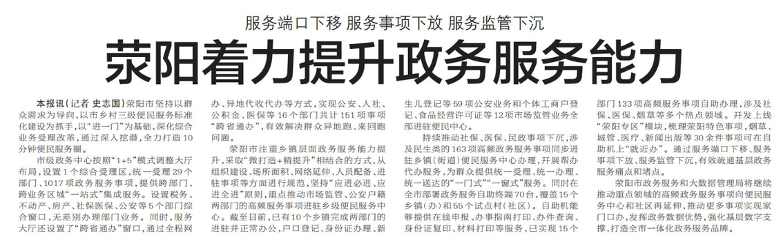 荥阳着力提升政务服务能力