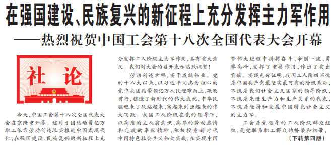 ——热烈祝贺中国工会第十八次全国代表大会开幕