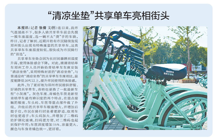 “清凉坐垫”共享单车亮相街头