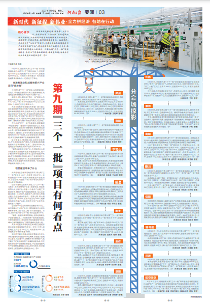8月15日,全省第九期“三个一批”项目建设活动举行,共签约、开工项目1220个,总投资约11408亿元;结转投产项目1072个,总投资约8595亿元。本期项目有何看点?将为我省发展带来何种助力?记者进行了采访。(今日《河南日报》3版)