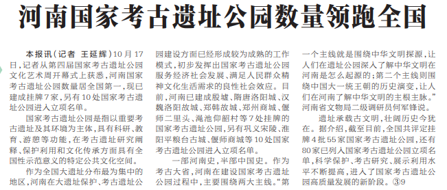 河南国家考古遗址公园数量领跑全国