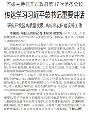 10月17日,市长何雄主持召开市政府第17次常务会议,李黔淼、陈宏伟、石秀田、王鸿勋参加会议。今日《郑州日报》1版、2版)