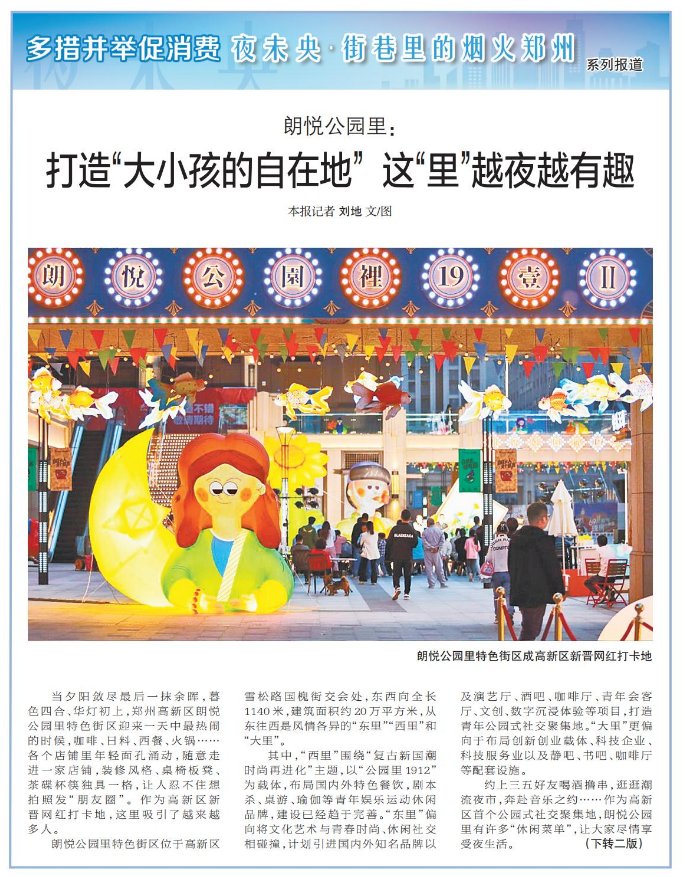 当夕阳敛尽最后一抹余晖,暮色四合、华灯初上,郑州高新区朗悦公园里特色街区迎来一天中最热闹的时候,咖啡、日料、西餐、火锅……各个店铺里年轻面孔涌动,随意走进一家店铺,装修风格、桌椅板凳、茶碟杯筷独具一格,让人忍不住想拍照发“朋友圈”。作为高新区新晋网红打卡地,这里吸引了越来越多人。(今日《郑州日报》1版、2版)