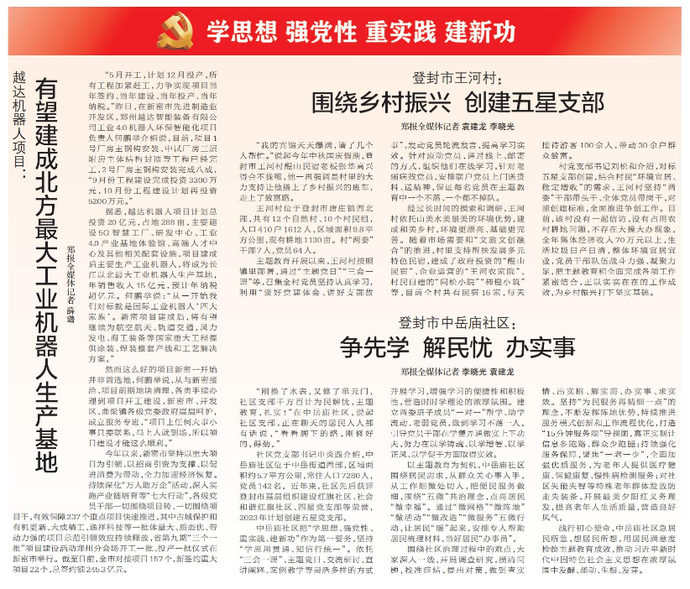 市领导虎强、李党生参加调研。(今日《郑州日报》1版)