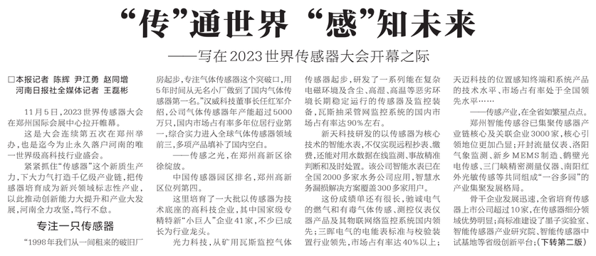 紧紧抓住“传感器”这个新质生产力,下大力气打造千亿级产业链,把传感器培育成为新兴领域标志性产业,以此推动创新能力大提升和产业大发展,河南全力攻坚,笃行不怠。(今日《河南日报》1版、2版)