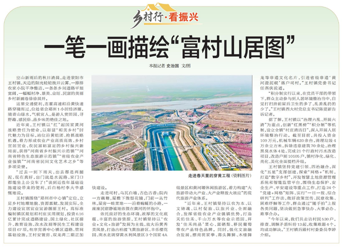 空山新雨后的秋日清晨,走进荥阳市王村镇,天边的阳光轻轻拨开云雾,一排排农家小院干净整洁,一条条乡间道路平坦宽阔,一幅幅村净、景美、业旺、民富的美丽乡村新画卷徐徐展开。(今日《郑州日报》7版)