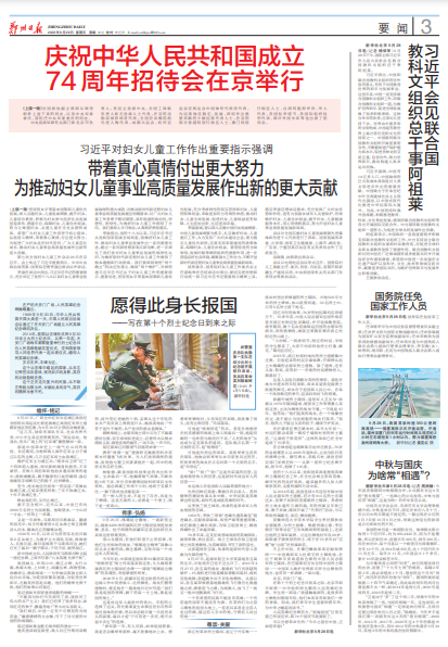 点击收听9月29日中央台《新闻和报纸摘要》