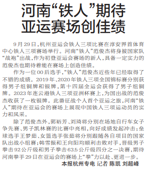河南“铁人”期待亚运赛场创佳绩