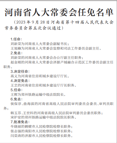 河南省人大常委会任免名单