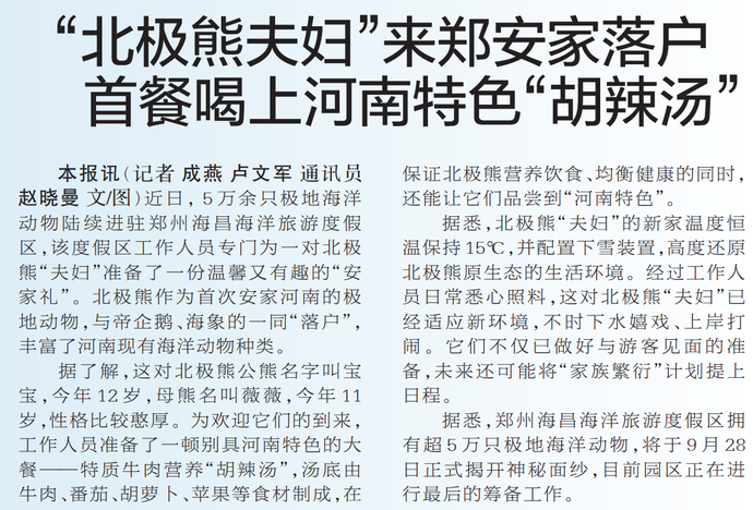 “北极熊夫妇”来郑安家落户 首餐喝上河南特色“胡辣汤”