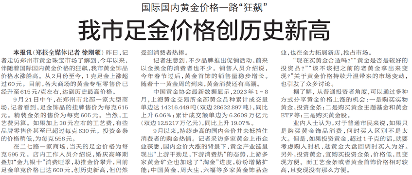 我市足金价格创历史新高