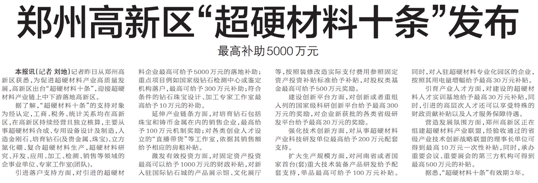 郑州高新区“超硬材料十条”发布