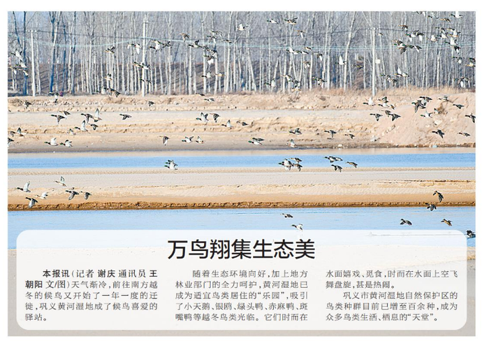 天气渐冷,前往南方越冬的候鸟又开始了一年一度的迁徙,巩义黄河湿地成了候鸟喜爱的驿站。(今日《郑州日报》1版)