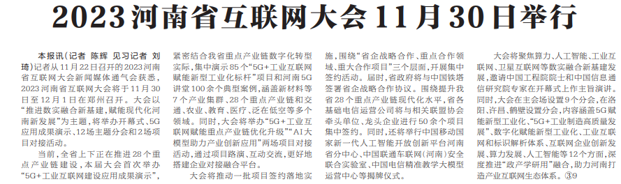 2023河南省互联网大会11月30日举行