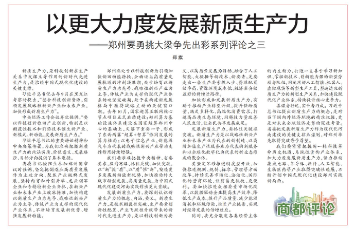 ——郑州要勇挑大梁争先出彩系列评论之三
