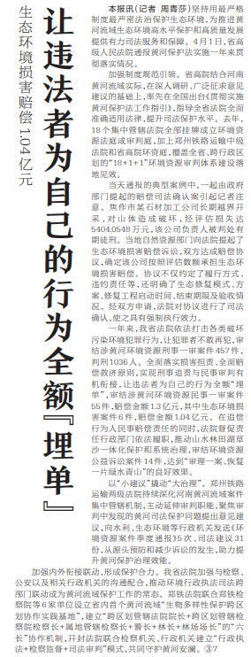 坚持用最严格制度最严密法治保护生态环境,为推进黄河流域生态环境高水平保护和高质量发展提供有力司法服务和保障。4月1日,省高级人民法院通报黄河保护法实施一年来贯彻落实情况。(今日《河南日报》3版)