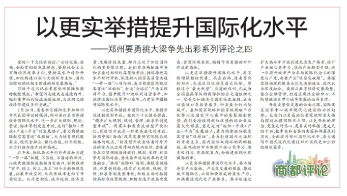 ——郑州要勇挑大梁争先出彩系列评论之四