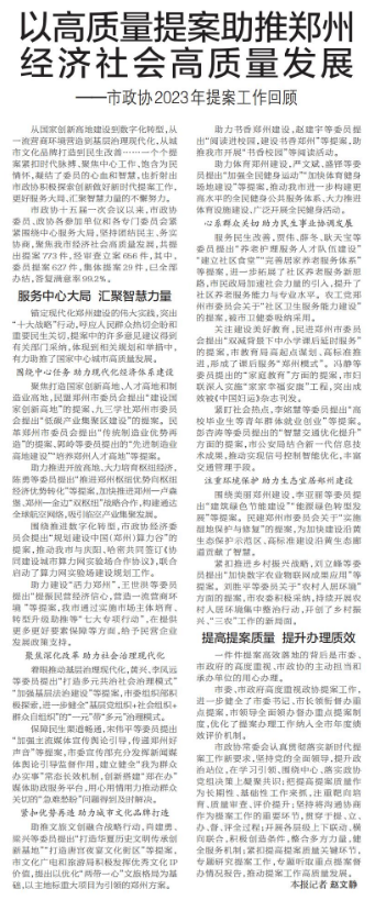 以高质量提案助推郑州经济社会高质量发展