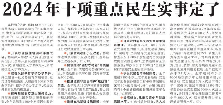 我省发布2024年重点民生十件事