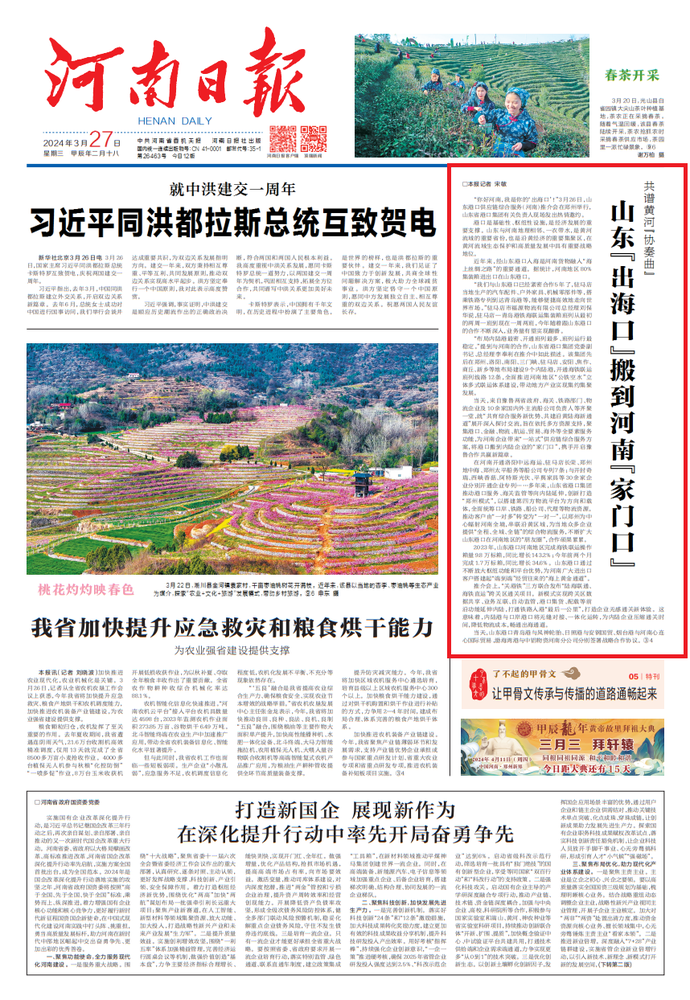 港口是基础性、枢纽性设施,是经济发展的重要支撑。山东与河南地理相邻、一衣带水,是黄河流域的重要省份,也是沿黄经济的重要集聚区,在黄河流域生态保护和高质量发展中具有重要战略地位。