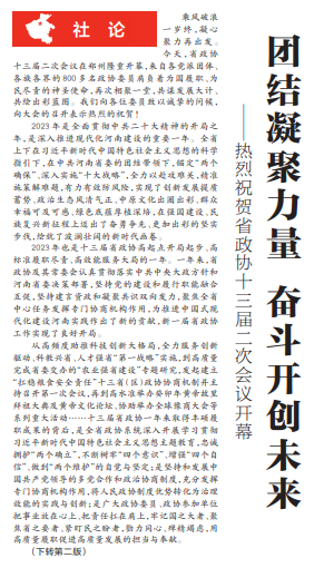 乘风破浪一岁终,凝心聚力再出发。今天,省政协十三届二次会议在郑州隆重开幕,来自各党派团体、各族各界的800多名政协委员肩负着为国履职、为民尽责的神圣使命,再次相聚一堂,共谋发展大计、共绘出彩蓝图。我们向各位委员致以诚挚的问候,向大会的召开表示热烈的祝贺!(今日《河南日报》1版、2版)