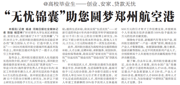 “无忧锦囊”助您圆梦郑州航空港