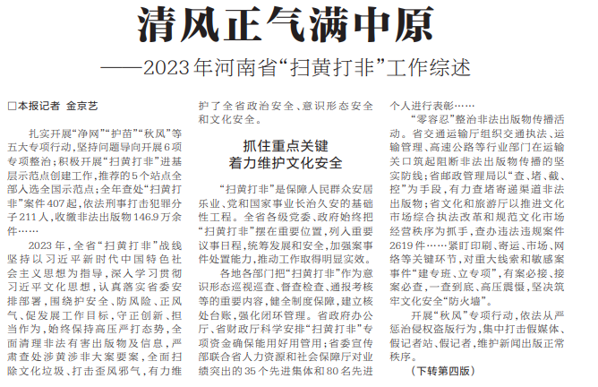 ——2023年河南省“扫黄打非”工作综述