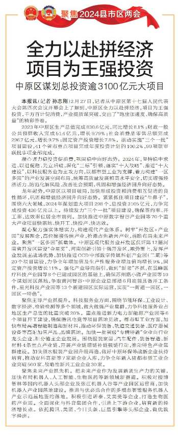 中原区谋划总投资逾3100亿元大项目