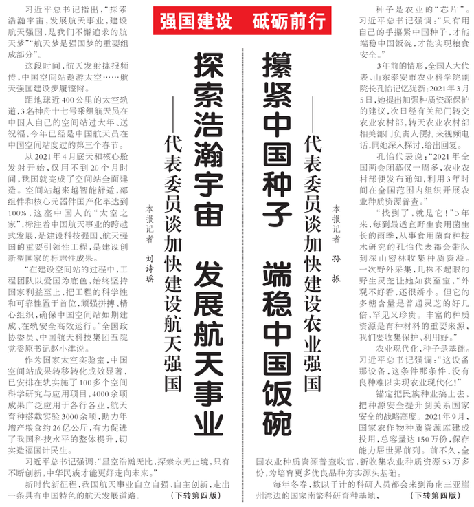 ——代表委员谈加快建设航天强国