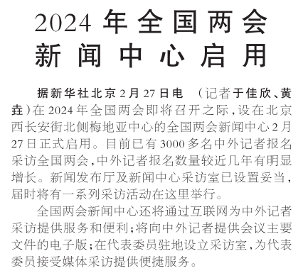 2024年全国两会新闻中心启用